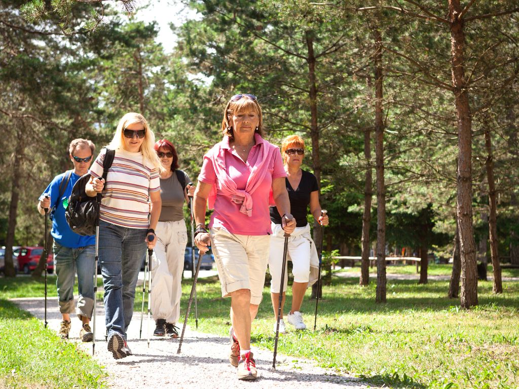 • camminata veloce e nordic walking: si cammina a circa 6-7 chilometri orari ed è accompagnata dal movimento naturale delle braccia; è adatta a tutti, aumenta la resistenza muscolare e migliora la circolazione sanguigna e l’ossigenazione di organi e tessuti;
