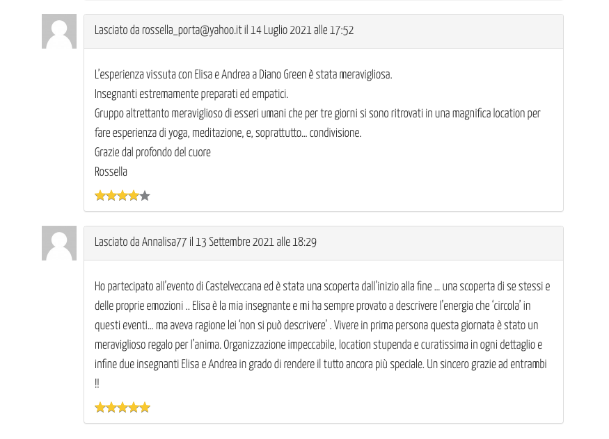 Per farti comprendere quanto sia importante raccogliere le referenze, eccoti un esempio concreto preso proprio dal nostro sito web, eventiyoga.it.