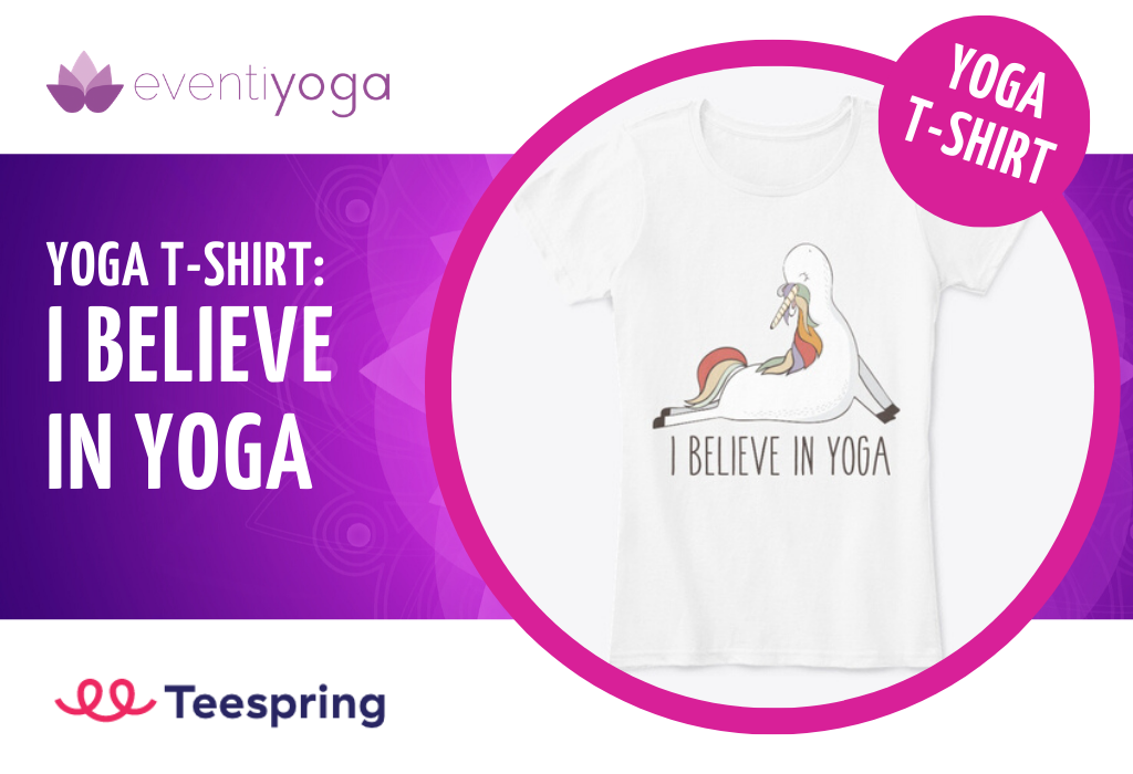 Simpatica t-shirt con unicorno in Urdhva Mukha Svanasana.